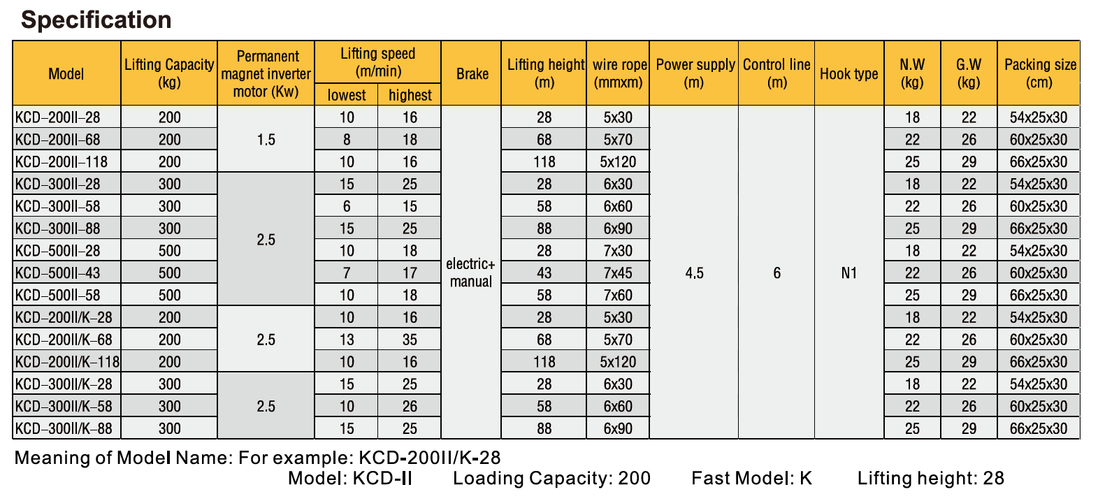 11. Ang double-line lifting capacity ay tataas ng 85% kapag gumagamit ng triangular pulley, ngunit ang bilis ay mababawasan ng kalahati.