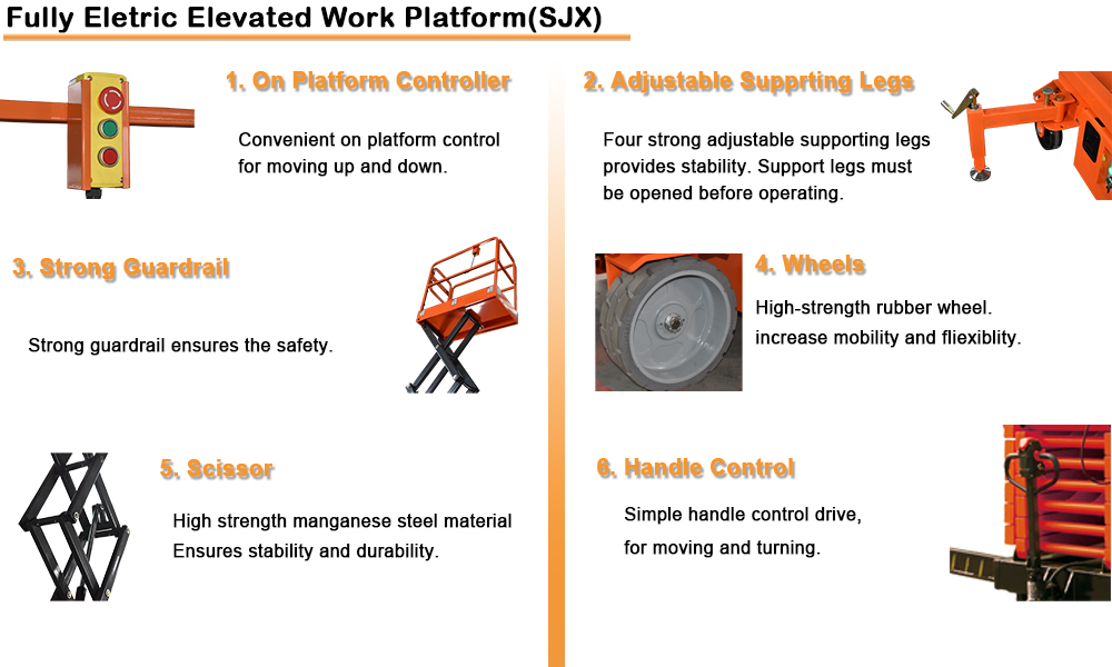 Ang aming electric powered Hydraulic Scissor Work Platform ay pangunahing ginagamit para sa mataas na trabaho, paghawak ng kargamento at pagsuporta sa produkto sa linya ng produksyon sa mga pabrika, bodega, istasyon, daungan at paliparan atbp. Ang aming hydraulic work platform ay binubuo ng drive gear, platform, shear-like yoke, chassis at electric control cabinet pati na ang hydraulic power unit na binubuo ng oil pump, motor at solenoid valve. Ang aming mga produkto ay energy-saving at environment friendly na may kaunting ingay at walang emission. Mayroon kaming mga opsyon ng Semi-Electric (Manual na gumalaw at awtomatikong iangat) at Fully electric (Self-Propelled) na may adjustable na bilis ng paggalaw. Ang pinakamataas na taas ng pagtatrabaho ay mula 6m hanggang 16m. Maraming pag-iingat sa kaligtasan, halimbawa, mga explosion-proof valve, spillover valve at emergency decline valve atbp...