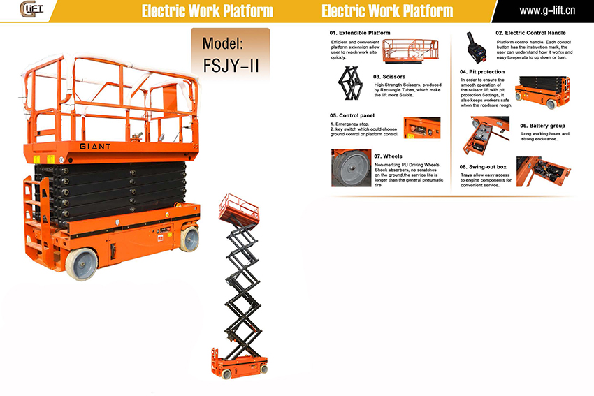 Ang Electric Work Platform ay hinihimok ng lakas ng baterya, electric hydraulic system.