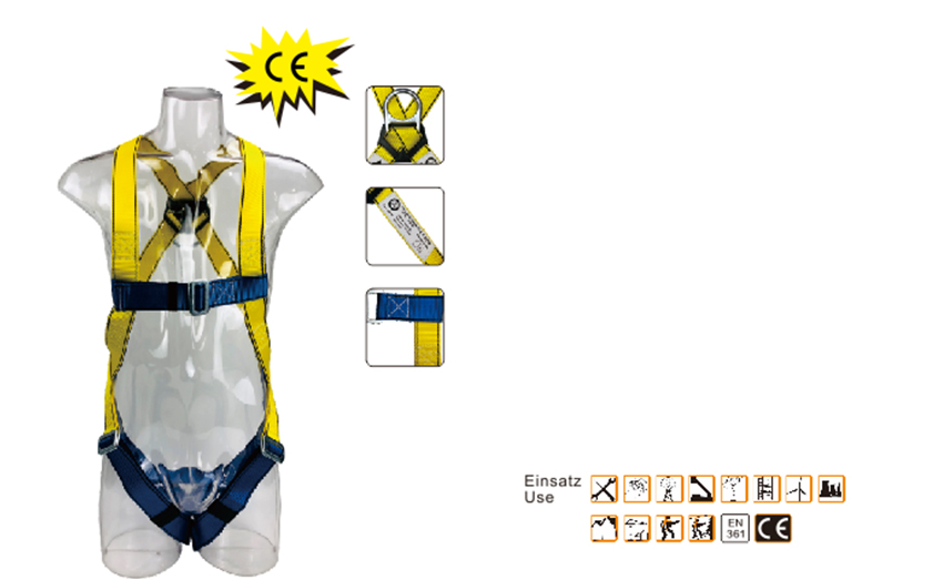 -Ang bawat anchorage point sa harness ay dapat may static na reslstance > 1 5KN sa loob ng 3 minuto (EN361 at EN 358 ).